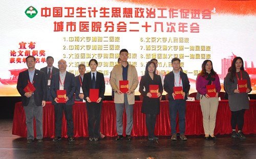 10月14日,中国卫生计生思想政治工作促进会城市医院分会二十八次年会在大连召开,中南大学湘雅三医院荣获论文组织奖,10篇论文荣获优秀论文,并收录在论文集《医院工作研究文库》。