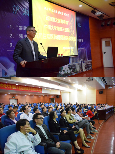 10月23日晚,中南大学湘雅三医院首届“新湘雅之医界寻踪”住院医师病例演讲比赛总决赛在外科楼二楼学术报告厅激情开赛。比赛邀请外科学教研室主任李小荣、内科教研室副主任郭勤、泌尿外科副主任蒋志强、全科医学教研室副主任王建文、神经内科教研室副主任谷绍娟、呼吸内科副教授谢丽华、肝胆胰外科副教授黄穰浪担任主评委,各住培专业基地项目主管、带教老师及住院医师代表共50人担任大众评委,全体住院医师现场观看比赛。活动由住院医师培训部主任姚晨姣主持。