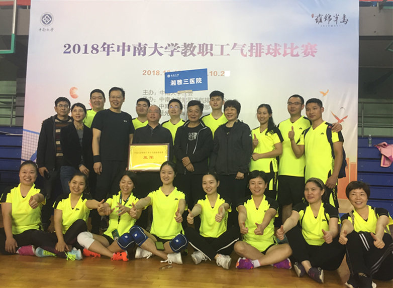 10月26日至28日,中南大学教职工气排球比赛第二阶段精英赛在校本部体育馆激烈上演。湘雅三医院党委副书记、纪委书记、分管工会的院领导张劲强带领医院男、女代表队参赛。在三天的鏖战中,医院男、女代表队顽强拼搏、团结协作、每球必争,每场比赛都尽力发挥。张书记和工会常务副主席徐绍容全程观战,带领医院啦啦队为队员们鼓劲加油、呐喊助威,气势如虹,堪称“最强拉拉队”。湘雅三医院男子代表队不负众望,力克群雄,作为本届中南大学最强劲的黑马杀入决赛。