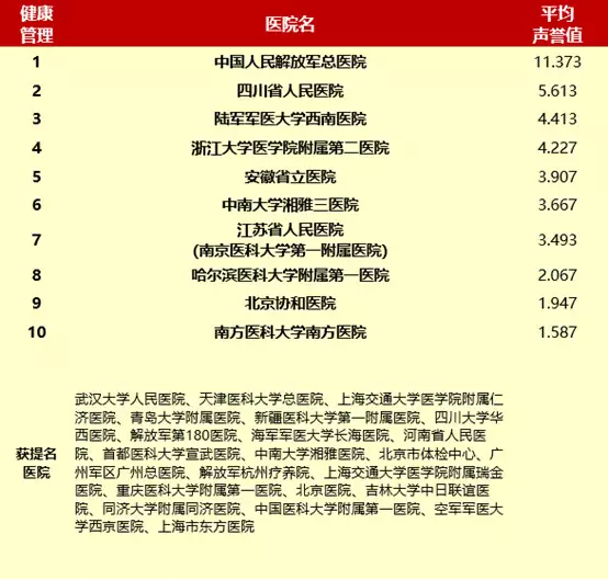 一喜:健康管理科进入《中国医院及专科声誉排行榜》前十