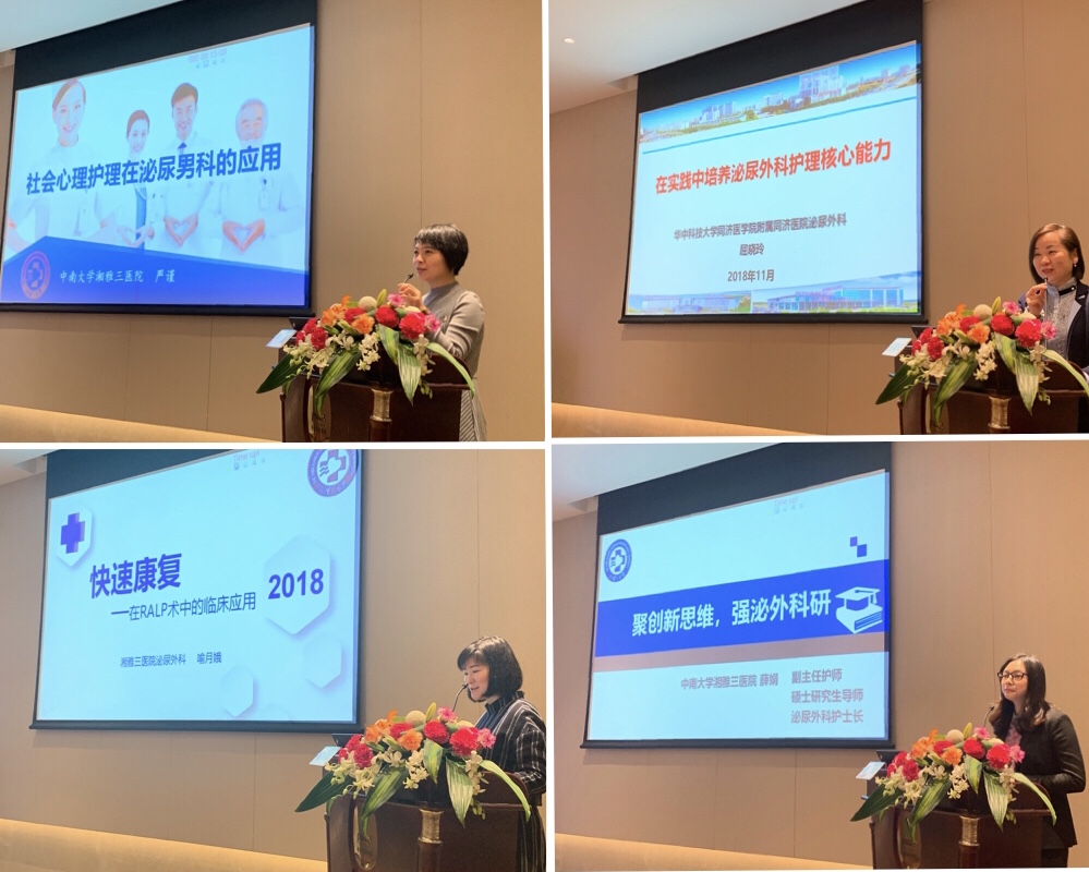 护理分会场围绕男科护理的前沿技术与热点话题开展学习研讨。会议特邀了亚洲男科学协会护理专业委员会委员屈晓玲教授、中国性学会中部专家分会心理健康学会秘书长孟平教授等专家做了精彩的报告。中南大学湘雅三医院护理部副主任严谨教授围绕两性差异,提出了社会心理护理在泌尿男科中的应用展望,讲解精辟幽默,赢得了满堂喝彩;泌尿外科29病区护士长薛娟副教授巧妙运用四个实践案例,“接地气”传授了论文撰写、专利申报等方法,主题鲜明,紧贴临床,为基层护理工作者实施“高大上”的科研提供了方向,获得了参会代表的高度赞扬,泌尿外科28病区护士长喻月娥副教授则从快速康复的主题分享了在泌外男科的护理经验,获得好评。