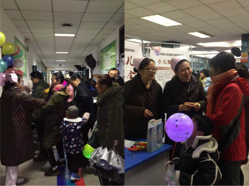中医科护士长管彬带领着中医科的护士维持着现场就诊秩序,指导人员分流,并向家长们进行中医育儿保健知识的宣教,同时还为宝宝们准备了精美的礼品。
