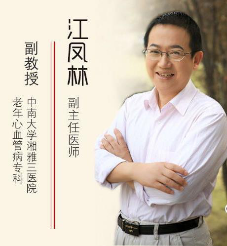 江凤林,知名心血管病专家、科普学者,中南大学湘雅三医院副教授、副主任医师、硕士生导师,湖南省健康教育专业委员会副主任委员,首届中国健康科普优秀医生,《中南药学·用药与健康》杂志副主编、科普顾问,湖南红网品质消费专家顾问。从事心血管病临床工作25年,在心血管疾病的诊治方面积累了丰富的临床经验。