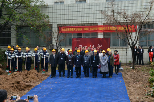 2018年12月28日上午9:08分,中南大学湘雅三医院门诊医技楼临时污水处理站项目开工仪式在影像楼前坪举行,院领导何庆南、张国刚、杨飞龙、邓云龙、黄飞舟、汤英及相关科室负责人出席。