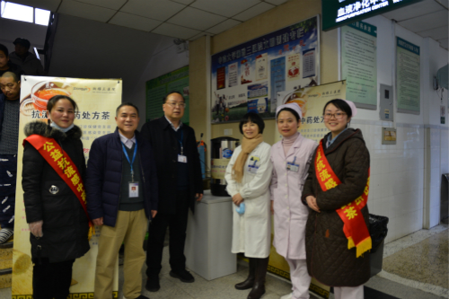 2019年伊始,流感病毒再次席卷而来,医务人员们纷纷进入“紧急备战”状态。1月17日,在湘雅三医院第七党总支门诊保健党支部、第二党总支中医感染党支部指导下,门诊办联合中医科联合在门诊大厅,免费为广大病患派送抗流感中药茶。活动第一天,流感茶发放数千杯。此后持续两周,门诊大厅均为广大病患和全院职工提供冲泡好的抗流感中药茶剂。