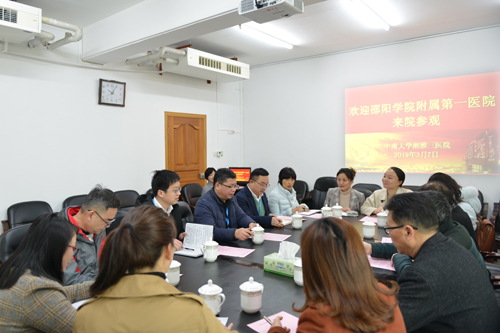 3月7日,邵阳学院第一附属医院党委副书记李均祥、业务副院长汪顺清一行10余人来院参观交流。医院党委副书记杨飞龙主持交流座谈会,党委书记何庆南、党办、科研部、社会服务部、医务部、教务部等部门负责人参加交流。