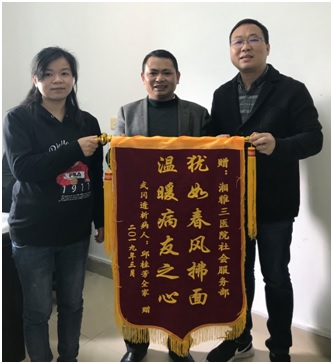 3月11日上午,中南大学湘雅三医院社会服务中心收到了一份特殊的礼物——来自眼科住院患者邱女士对医院行政管理部门的感谢信及锦旗。感谢信中写到:“感谢医院为老百姓着想,用最少的钱花最短的时间,解决了全家的大问题。”