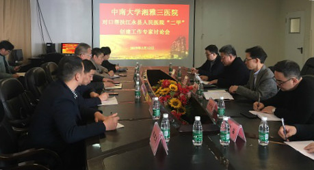 为落实省政府健康扶贫工作安排,加大推进江永县人民医院“二甲”创建工作的力度,3月12日下午,中南大学湘雅三医院对口帮扶江永县人民医院“二甲”创建工作专家讨论会在外科楼19楼会议室举行。