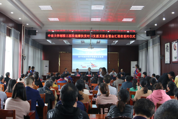 4月10日下午,中南大学湘雅三医院健康扶贫对口支援见面会在江华瑶族自治县人民医院举行。江华瑶族自治县县委书记罗建华,江华瑶族自治县人民医院院长李昌江等参加见面会。见面会上,何庆南书记介绍,自2013年6月以来,湘雅三医院共派出14批47名医学博士到该院驻点帮扶,并接受近百名医护人员到湘雅三医院免费进修学习。派驻医务人员通过规范常见病、多发病的诊疗流程,指导疑难危重病人的救治,积极推进适宜新技术的开展等方式,以“务实、见效”的工作原则,全方位提高了帮扶科室的医疗管理与技术水平。2018年11月,湖南省卫生健康委同意将江华瑶族自治县人民医院设置为三级综合医院,标志着江华县卫生健康工作水平迈上了新的台阶。