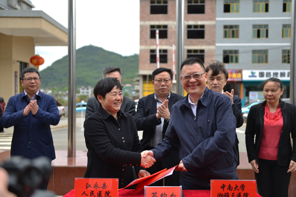 何庆南书记在签约仪式上表示,很欣慰地看到江永县人民医院近年来的快速发展,医疗服务能力和管理水平都在不断提升。根据省委省政府工作安排,由湘雅三医院对口帮扶江永县人民医院,湘雅三医院必将全力以赴完成帮扶任务,确保病人“转得上、接得住”。湘雅三医院将根据党的十九大关于打赢脱贫攻坚战总体部署,认真贯彻落实相关文件要求,采取派驻专家、科室对科室及点对点技术帮扶等措施,帮扶江永县人民医院顺利创建“二甲”,全面提升医疗管理水平,夯实医疗服务能力。