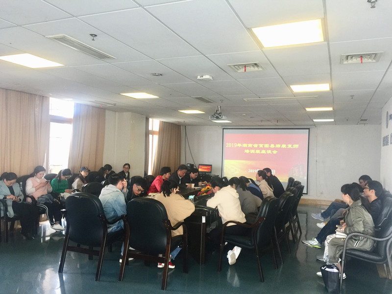 4月16日,湖南省2019年首期贫困县县级医院肺康复师培训班中期座谈会在湘雅三医院外科楼十九楼举行。湖南省卫生健康委医政医管处副处长李世忠、主任科员欧阳煜出席,湘雅三医院护理部主任严谨,护理教研室副主任易琦峰及湖南省2019年首期贫困县县级医院肺康复师培训班全体学员参加座谈会。