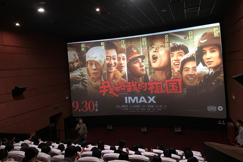 观影前,总支书记朱锐提到这是她第二次观看《我和我的祖国》,并简要介绍了观影后心潮澎湃的感受,为国人自信、勇敢、坚韧而感动,被一个个与历史交融的平凡故事所鼓舞,为日益强盛的祖国而自豪。