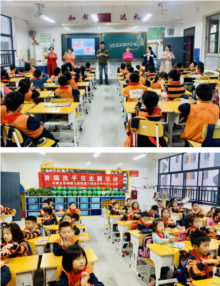 2019年10月15日是第八个全球洗手日,中南大学湘雅三医院手术中心举办了首届洗手日活动日。手术中心的九位护士走进博才小学1804班教小朋友们科学正确地洗手。