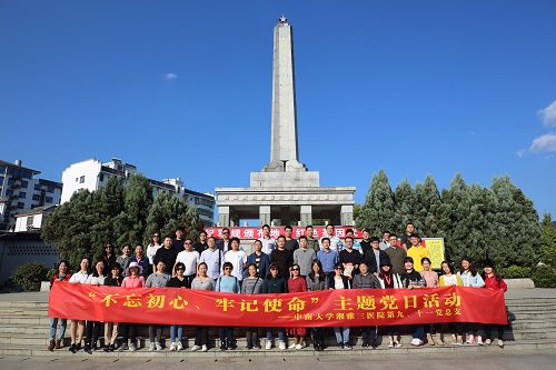 为了进一步推进“不忘初心,牢记使命”主题教育,10月19-20日,中南大学湘雅三医院第九、十一党总支组织50余名党员,赴郴州汝城县沙洲村“半床被子”故事发生地、桂东县沙田镇“第一军规”颁布地和毛泽东迎还红军大队旧址——唐家大屋、湘南起义纪念馆等,追忆红色故事,重温入党誓词,接受革命传统教育。