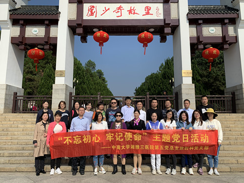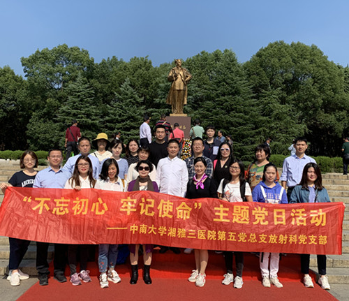 10月19至20日,中南大学湘雅三医院放射科“双带头人”教师党支部工作室——第五党总支放射科党支部组织全体党员及部分积极群众赴刘少奇故居、宁乡花明楼及香山开展“不忘初心,牢记使命”主题党日活动。