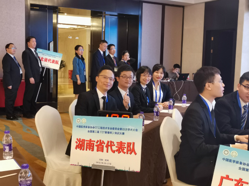 大赛由中国医学装备协会CT工程技术专业委员会主任委员、空军军医大学西京医院石明国教授担任裁判长,国内知名影像技术专家组成裁判团。分为“必答题”、“抢答题”“风险题”三个环节,每个环节的内容都涵盖影像解剖、影像技术、影像诊断、影像护理、影像工程等方面。整个比赛不仅知识面涉及广,还要考验比赛队员的反应速度、团队协作能力和临场发挥能力。比赛中,湖南队团结协作,发挥优良。
