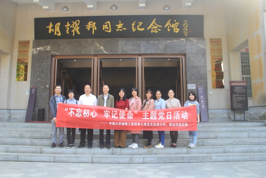为了进一步推进“不忘初心,牢记使命”主题教育,传承和弘扬革命精神,加强党性修养、坚定理想信念,11月3日,中南大学湘雅三医院第七党总支血液内科输血科党支部在党总支书记毛赤丹带领下,奔赴浏阳市人民医院、胡耀邦故居开展主题党日活动。