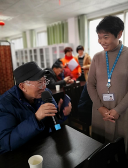 杨华书记在一次走访慰问时,表扬2020年“学习强国”进步最快的陈道瑾教授。陈教授听到表扬很高兴,分享了自己的学习体会,建议视力不好的老同志多使用软件中的听读频道。