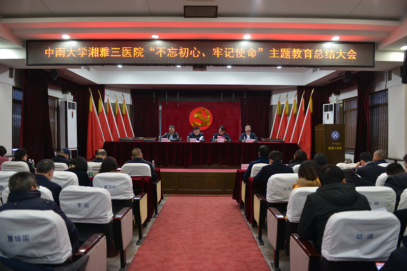 1月16日下午,中南大学湘雅三医院召开“不忘初心、牢记使命”主题教育总结大会,进一步学习贯彻习近平新时代中国特色社会主义思想,传达落实习近平总书记在“不忘初心、牢记使命”主题教育总结大会上的讲话精神,总结回顾医院主题教育,对深化拓展主题教育成果进行部署。