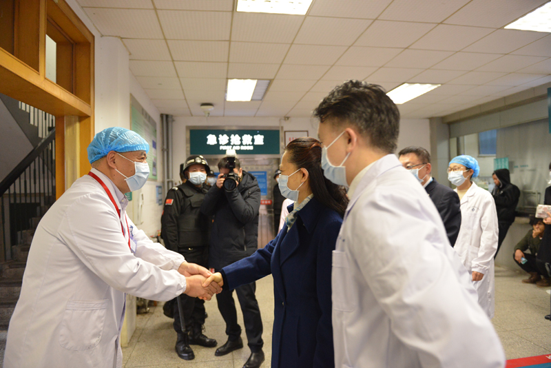 58岁的急诊科主任张天一多年来坚守急诊岗位,为了春节值守,他提前回老家陪父亲吃了顿团圆饭。田红旗握着张天一的手说:“感谢你们舍小家为大家,谢谢家人的支持,向您父亲问好!”