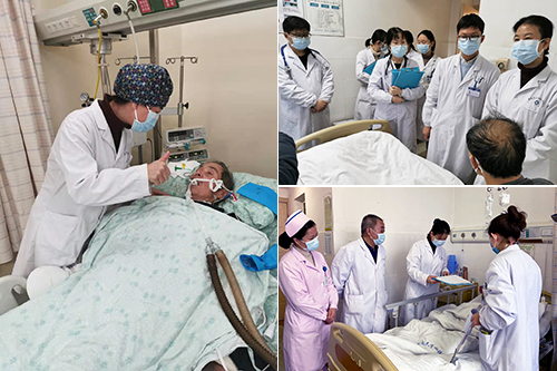 王晓艳主任在大年初一专程看望节前从消化科转至ICU的重症患者张爷爷。这位76岁的老人有严重肺部疾病,因十二指肠球部溃疡大出血并胸腹腔积液经内镜及手术救治,老人转危为安。大年初一在重症监护病房患者苏醒,虽然插着呼吸机不能说话,但当他听到王教授的鼓励时,努力地点了点头。
