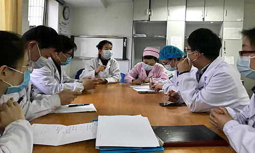 面对新型冠状病毒疑似病例及潜伏人数仍有不断增加,消化内科全体人员从上到下思想行动高度统一。大年初三,科主任王晓艳及时组织召开会议,制定病房应对冠状病毒的防治策略,并立即形成了消化内科对住院患者新型冠状病毒再排查制度、陪护和限制探访方案,严防疫情进入病区,造成蔓延,危及体弱患者的生命安全。