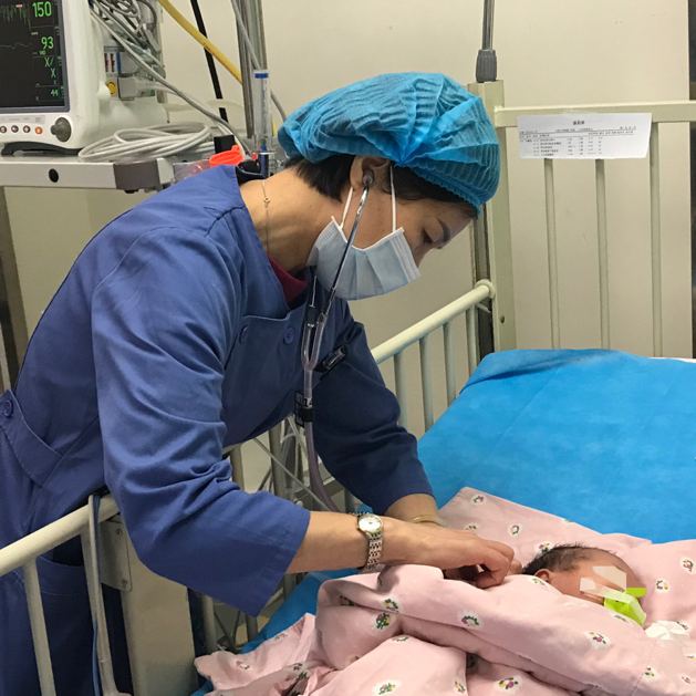 大年三十,陈淳媛教授例行查房,为小患儿听诊肺部情况
