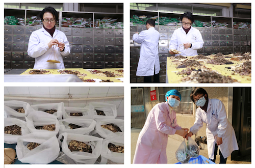 1月26日,湖南省中医药管理局发布了《湖南省新型冠状病毒感染的肺炎中医药诊疗方案(试行第二版)的通知》,左笑丛主任立即与中医科肖岚主任商量,如何制定预防新型冠状病毒肺炎的中药预防方案和煎制流程,说干就干,很快在中药预防方案中达成共识。1月27日上午的医院党委召开的防控新型冠状病毒感染的肺炎工作会议上,这项工作得到了医院领导的认可和大力支持。但正值大年初三,中药房的工作人员仅3人,把已经回家过年的中药房药师们喊回来加班熬制中药,能否满足临床需要的量呢?但责任重于泰山,没想太多就拨通中药房组长陈俊兵电话,简单说明了熬制中药的任务后,陈俊兵主管药师毫不犹豫的说“中药房的同事们会克服一切困难,马上赶回长沙完成任务”,此时左教授终于放下心来,为这样有责任感的药师们感到自豪也为他们的行动点赞。