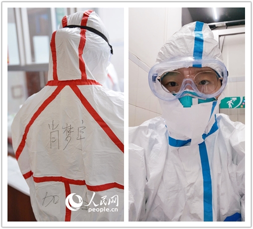 1月25日大年初一,大家被这个背影感动。97年出生的肖梦宇是9病区最年轻的护士,同事们都喊她“梦宇妹妹”。她有着温暖的面庞、美丽的笑容,小小身体藏着巨大能量,在家是爸妈娇闺女,工作时是守护人们生命的天使,春节前毅然去支援医院发热门诊,奋战抗击新冠状病毒第一线,每天穿着“笨重”的防护服,总是那么从容和淡定。肖梦宇告诉我,家里还有一个妹妹,今年高考,妹妹想和她考同一个大学。说到这,她欣然地笑了。是的,她是妹妹眼里的榜样,同样也是我们的榜样。