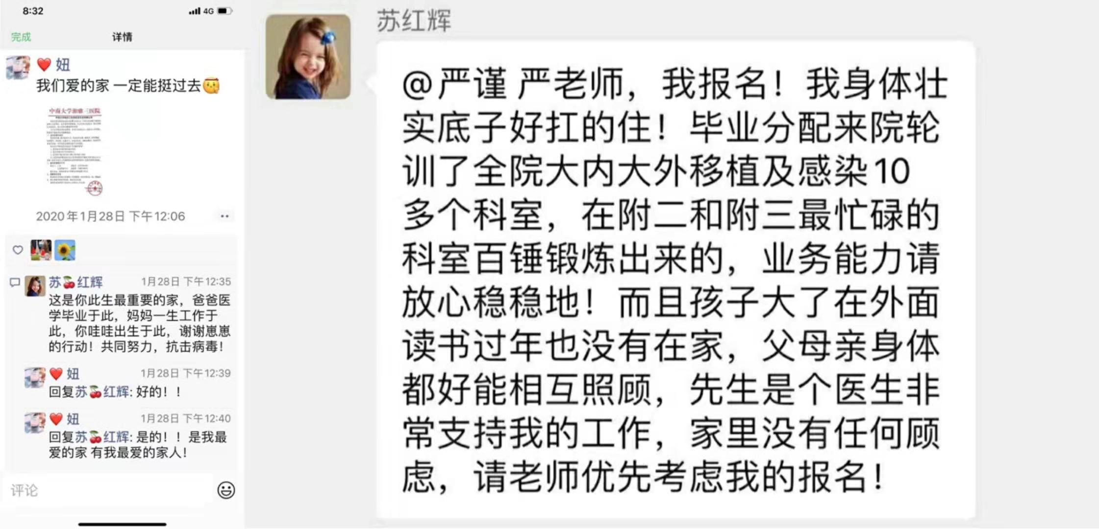 “我把妈妈送到医院借给你们当天使去了哦,是借给你们的,记得要还”。这是护理部科护士长卜平元女儿朋友圈里的一句话。孩子早已习惯妈妈不能守护的日子,也习惯了妈妈的不理不睬,妈妈从小就告诉她,有事找妈妈:留言就行,妈妈方便回复肯定会第一时间回复你的。大年初二关注妈妈午餐的孩子,一直等不到妈妈回复的孩子,一点也不焦虑,自己订外卖,自己照顾自己,因为她知道没有消息就是好消息。