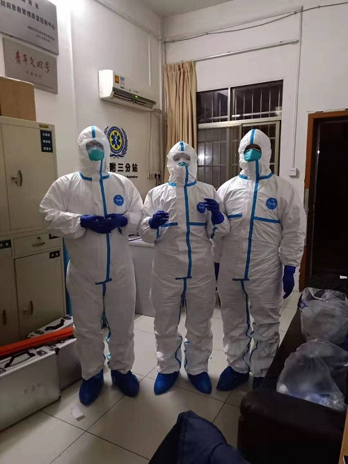根据患者情况,急救医生胡钦倬、护士卢蓉、驾驶员邱梦罴带好医用防护口罩、护目镜、一次性防护服等二级的防护装备,驾驶员检查确认车辆情况及负压装置良好后驶向现场。赶到现场后,救护车到达离患者最近的地方等待,减少患者与环境的接触空间。等患者上车后给患者戴上口罩,检测生命体征,给予必要的急救处理,一路上,车组人员一边安抚焦躁不安的患者,一边密切观察其病情变化,终于将患者安全送至湘雅三医院发热门诊。从出发到转运,接警急救的整个过程谨慎而细致。