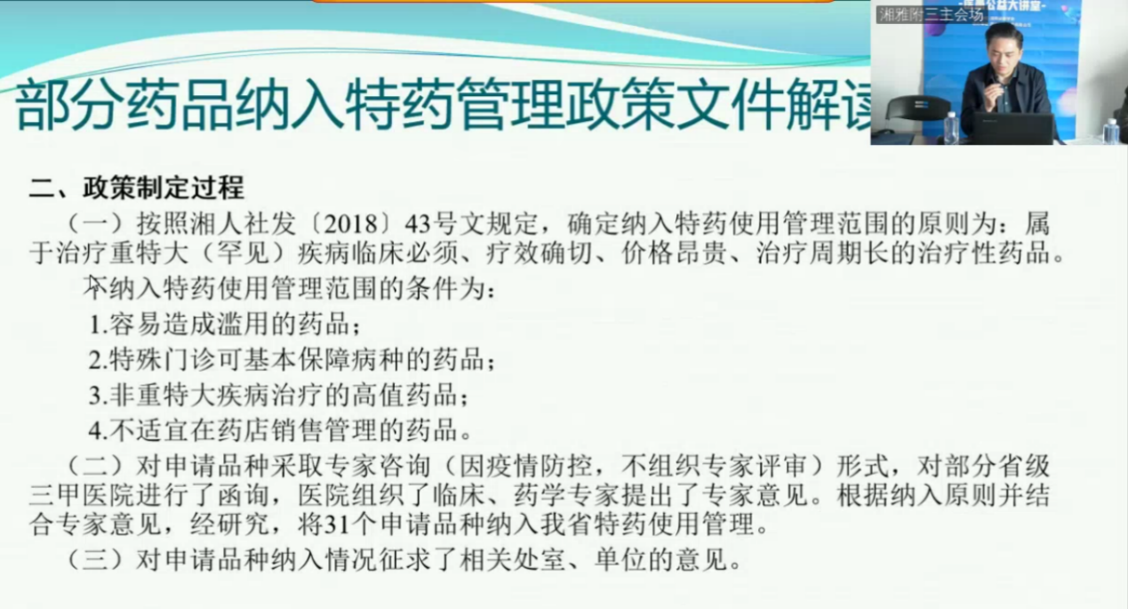 曹亮科长为患者带来了部分药品纳入特药管理政策文件解读。他指出,对涉及癌症、罕见病、肝炎、糖尿病、耐多药结核、风湿免疫、心脑血管、消化等10余个临床治疗领域的新增纳入我省特药使用管理范围,让参保患者真正享受到改革的红利。
