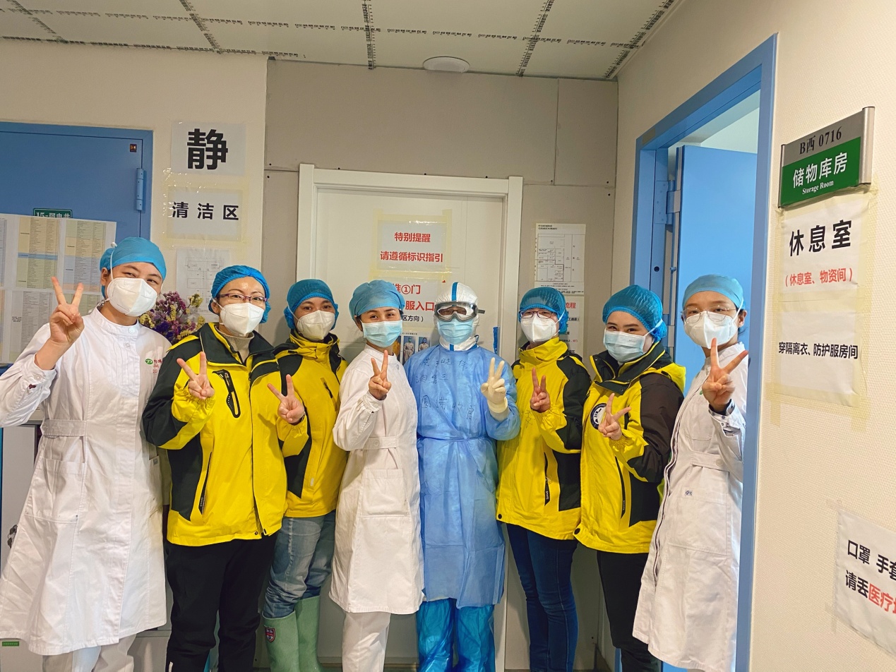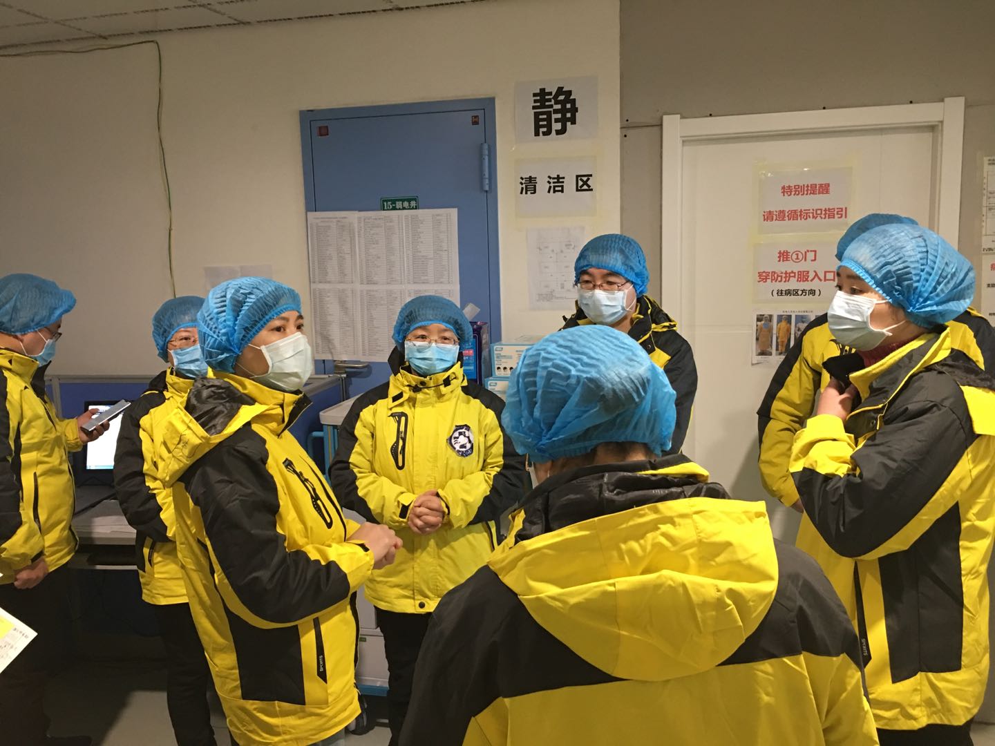 仍记得2月10日凌晨收治首批48例危重症新冠肺炎患者时的忙碌与紧张。由于是第一次接触新冠肺炎患者,面对完全陌生的疾病,大部分医护人员的心里都难免有些紧张。同济的电脑操作系统也与自家医院的完全不一样,病例书写与医嘱启停需要不断的摸索与熟悉。身边的同事也都是临时组建,来自不同专业,不同科室,有些甚至互相还不认识,彼此需要慢慢了解。临时改建的同济病房,医务人员工作区域很狭小,没有专门休息的地方。第一次进入隔离病房查房时,由于经验不足,患者也比较特殊,团队花了5个小时才把所有病人收治完毕。