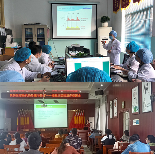 为提升医务人员的整体素质,加强业务学习,两名内科医生还面向全院进行了多次授课。赵立玲主治医师就原发性醛固酮增多症的诊治和院内胰岛素泵的应用进行了专题讲座,使基层医生对原发性醛固酮增多症有了深入的认识,并推进了基层医院胰岛素泵的规范化使用。唐岸柳主治医师对该院青年医务人员和进修医生开展了《溃疡性结肠炎的诊断和治疗》的专题讲座,从溃疡性结肠炎的流行病学、病因机制、病理、临床表现、诊断及治疗等各个方面对该疾病进行了深入浅出地讲解,促进了基层单位对炎症性肠病的规范化诊疗。