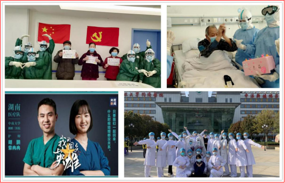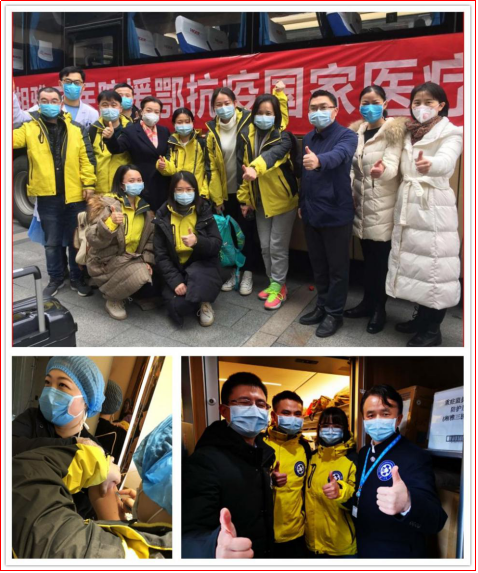 新冠肺炎疫情爆发以来,团员青年积极请战。2月8日,16名队员随中南大学湘雅三医院援湖北国家医疗队驰援武汉,奋战在疫情最前线。团干、移植中心主管护师周玲担任支援湖北抗疫临时团支部团小组长,带领团员青年担任病房危重症患者的“临时家属”。90后普外科护士索冉冉与老公——同院男护士胡鹏同赴武汉,并在前线正式递交入党申请书,被全国数十家媒体报道,成为央视携手18座城5万电子屏推广的“抗疫夫妻档”。多家媒体刊发黎娅、曾瑜、蒋洁琼等青年的“武汉战疫”日记,日记写道:“奋战15天!我院接管的同济医院中法院区重症病房病人陆续出院!从刚接管时的2台有创呼吸机,9台无创呼吸机,5台高流量到今天清零成功。所有的努力都得到了回报,仿佛防护服也不笨重,走起路来都轻快了不少。”