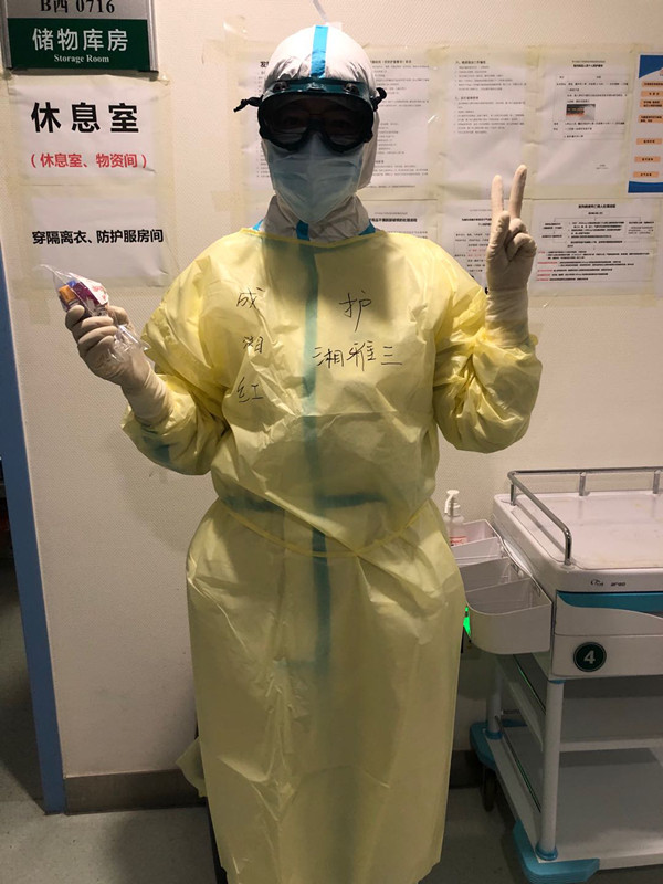 今年2月初,面对严峻的疫情形势,医院接到通知迅速反应组建医疗队驰援武汉。有着30年临床护理经验及23年护理管理经验的成湘红第一时间主动请缨。2月8日,成湘红随同湘雅三医院援湖北国家医疗队奔赴武汉。在武汉奋战的49天中,她冒着感染的风险主动进污染区,上晚夜班,用自己的专业知识帮助病人。她主动跟病人结成临时家属,陪病人聊天,嘘寒问暖,送生活必须品,给病人过生日,她用自己的实际行动诠释新湘雅护理人的责任与担当。