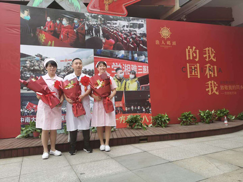 5月20日上午,湘雅三医院护理部卜平元、疼痛科郭刚文、肾内科骆绍琴三位援鄂国家医疗队成员,应邀参加由岳麓区文创协会主办的“致敬我的同乡英雄 文创在行动”活动。
