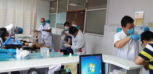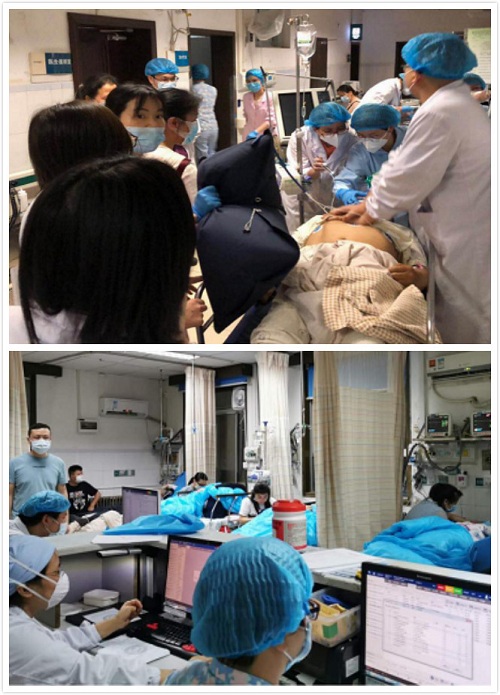抢救室满了,医护在走道加床全力抢救