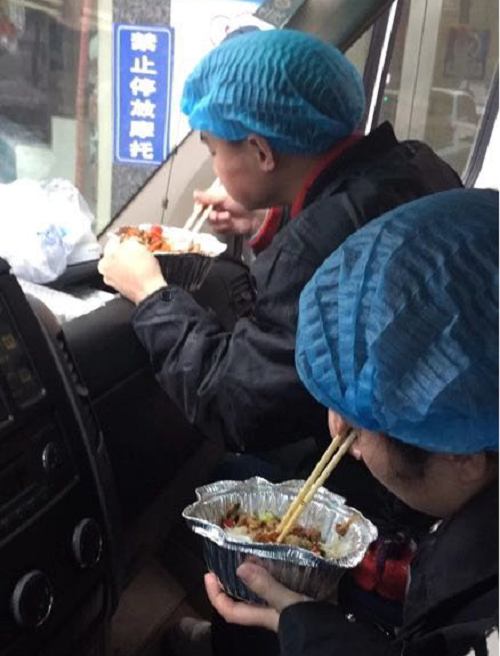 120司护人员节省时间车上吃外卖