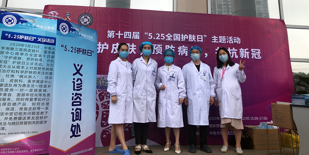 5月25日,湘雅三医院皮肤科、医学美容中心举办了主题为“守护皮肤、预防病毒、共抗新冠”的“5.25全国护肤日”义诊公益活动。