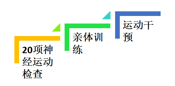检查+运动指导(20项神经运动功能检查)、养育+家庭干预(0-6月龄婴儿亲体训练)、运动+专业干预(婴儿早期运动干预)。