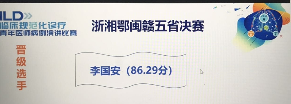 6月27日,中南大学湘雅三医院呼吸与危重症医学科主治医师李国安作为湖南省代表在浙湘鄂闽赣五省“间质性肺疾病(ILD)临床规范化诊疗青年医师病例演讲比赛”中夺冠,并将于8月份代表华东五省参加在成都举行的全国决赛。