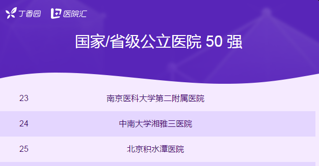 2020年7月1日,由丁香园主办,被誉为中国医疗品牌评选「奥斯卡」和医院品牌风向标的2019年度中国医疗机构品牌传播百强榜正式揭晓,中南大学湘雅三医院位列“国家/省级公立医院50强”第24位。自2016年参加评选至今,已连续四年入围该榜单50强。