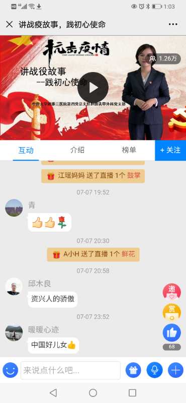 会后,在场的同志表示感触颇深, 对援鄂抗疫中无私奉献的队员们表达了深深敬意。肝胆胰外科I科(肝胆)主任罗宏武说:“出征的场景还历历在目,都是90后,在他眼里都还是一个孩子,但这次国家需要,她们穿上防护服逆行病毒战场保护他人,这种可贵的精神值得大家学习”。最后,余枭对本次活动做出总结,线上线下同时开展是为了让更多的人看到援鄂同志敢于担当、勇于担当的精神,并希望将精神传递到岗位中来,不忘初心,发挥新湘雅人不怕苦有大爱的精神,一路砥砺前行。