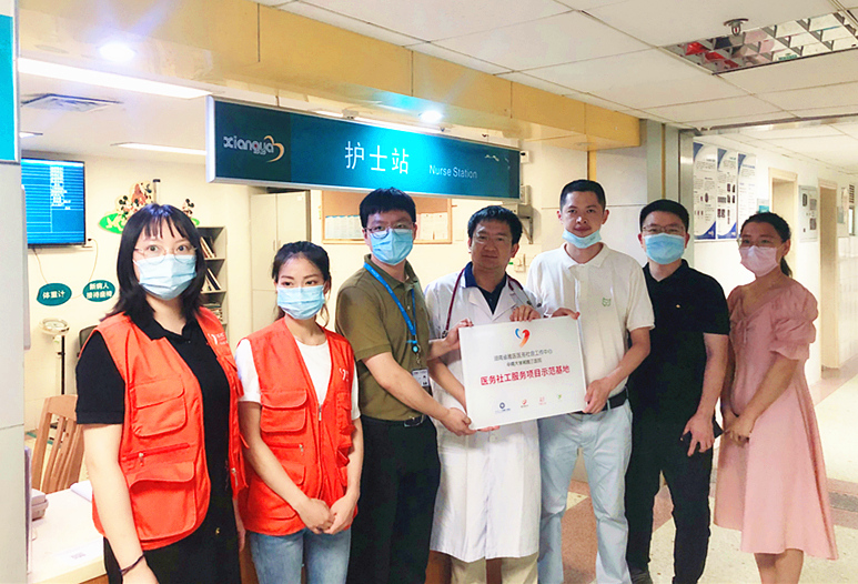 为进一步改善医疗服务质量,实现以患者为中心的服务目标,加强公立医院人文关怀体系建设,7月20日下午,中南大学湘雅三医院团委(医务社工与志愿服务指导中心)携手湖南省雅医医务社会工作中心及轻松公益在湘雅三医院综合楼二会议室举行了医务社工合作座谈会暨“医务社工服务项目示范基地”授牌仪式。