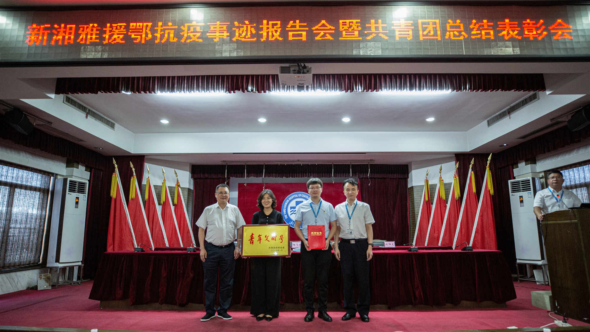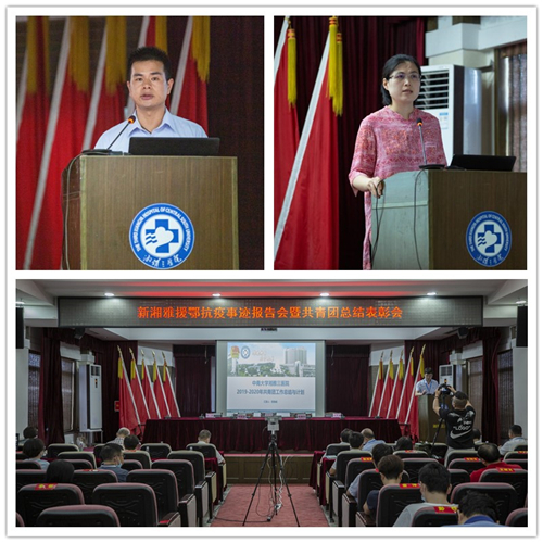 本次新湘雅援鄂抗疫事迹报告会为青年专场,由院团委推荐的援鄂抗疫临时团支部书记、急诊科副护士长李守根和医疗队中最年轻的医生、青年突击队队员、重症医学科刘兮作为主讲人。