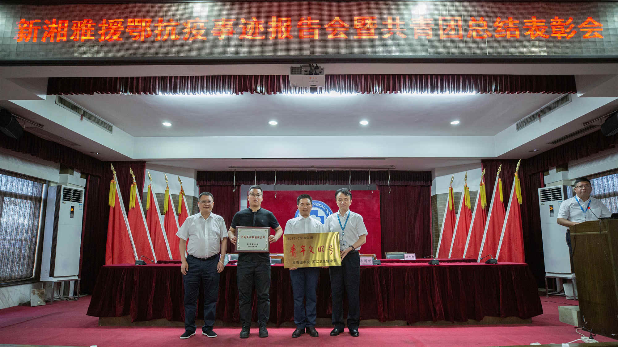 7月30日下午,中南大学湘雅三医院第十一场新湘雅青年援鄂抗疫事迹报告会暨2019-2020年度共青团工作总结表彰会在门诊楼五楼多功能厅主会场和科教楼会议室分会场同时举行。医院党委书记何庆南,院长张国刚,党委副书记、工会主席杨飞龙,党委副书记、纪委书记张劲强,党委委员、副院长朱晒红、欧阳文,党委委员、总会计师汤英,全体中层干部,全体团委委员及团支部书记及共青团系统国家级、省级荣誉获奖代表参加了会议。会议由杨飞龙主持。
