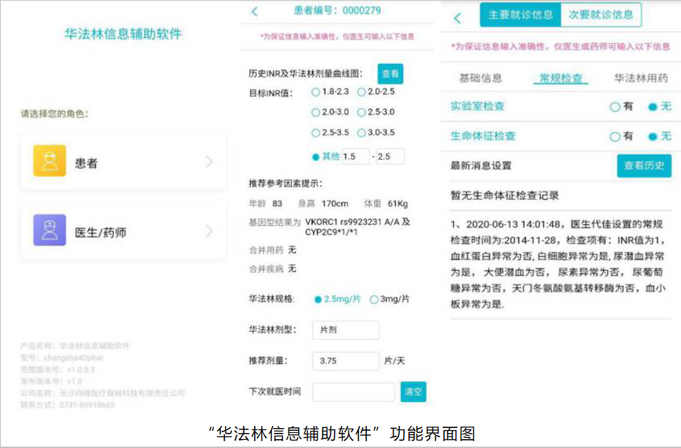 该产品可为患者提供病例用药相关信息管理、用药提醒、随访提醒及用药教育等服务,为医生和药师提供个体化用药指导建议、患者信息管理、相关科研统计分析等功能,进而达到临床精准使用华法林,降低其不良反应发生风险,减轻患者经济负担,提高患者生活质量。同时,它便于医生、药师及时总结、分析临床真实世界数据,提高诊疗水平。该产品无物理构件,是一全新类别的医疗器械产品。