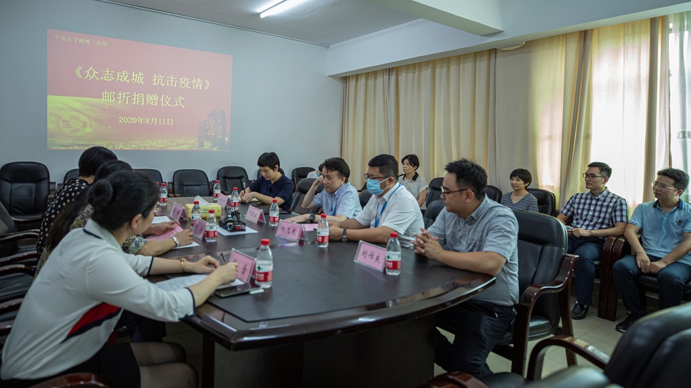 8月11日下午,中国邮政集团有限公司长沙分公司副总经理刘为一行来院捐赠,《众志成城 抗击疫情》邮折捐赠仪式在中南大学湘雅三医院综合楼一会议室顺利举行。中南大学湘雅三医院党委书记何庆南,援鄂国家医疗队队员代表出席了捐赠仪式,医院党委副书记杨飞龙担任主持。