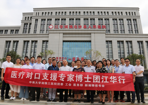 为响应国家、湖南省及中南大学关于精准扶贫与对口支援工作要求,发挥中南大学湘雅三医院社会实践博士团品牌优势,8月12-14日,中南大学湘雅三医院“三下乡”专家博士团赴江华开展了三级医院创建指导、贫困山区村民义诊、关爱留守儿童专题读书会、新湘雅青年援鄂抗疫事迹报告会暨图书捐赠等活动。